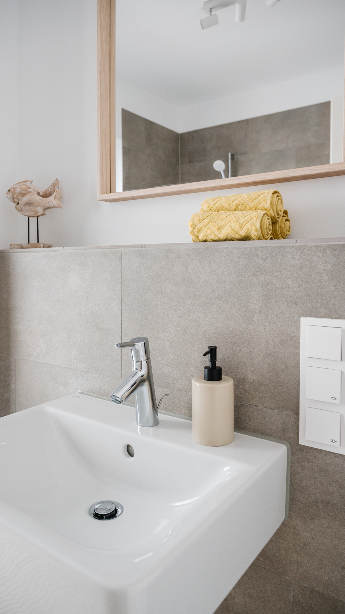 Für mich eigentlich nicht erwähnenswert. Da ich aber immer wieder andere Beispiele sehe: selbstverständlich wird jeder Raum von uns eingerichtet, dekoriert und beleuchtet, auch Badezimmer und Eingangsbereiche. Überall werden Deckenleuchten angebracht.